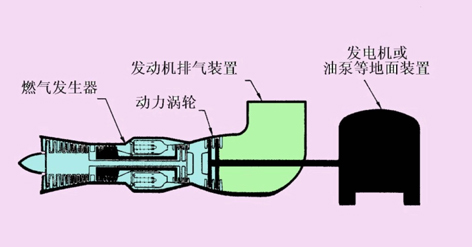 从原则上讲,如果能发展一台采用高循环参数、高新技术装备的高性能核心机(或燃气发生器),则可发展一系列的发动机,包括涡轮喷气发动机、涡轮风扇发动机、涡轮螺旋桨发动机、涡轮轴发动机以及地面和舰船用的动力。即用不同的方法来利用燃气发生器输出的高温高压燃气,就可得到不同的发动机。如果将这股燃气驱动一个带动负载设备(例如发电机、水泵、油泵)或船用螺旋桨的涡轮,那么原用于上天的航空发动机就可变为地面或舰船的动力了,这就是航空发动机在非航空领域中的应用。在燃气发生器后用来驱动地面装置的涡轮称为动力涡轮,燃气发生器加上动力涡轮称为地面或舰船用燃气轮机。一般动力涡轮的转速较高,而带动的发电机、水泵、油泵及船用螺旋桨等设备的转速均较低,因此,在动力涡轮与设备间需装减速装置。