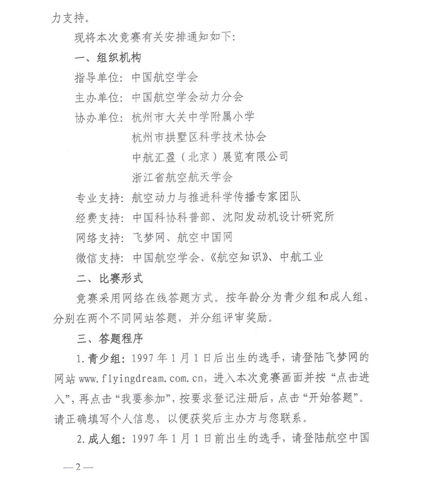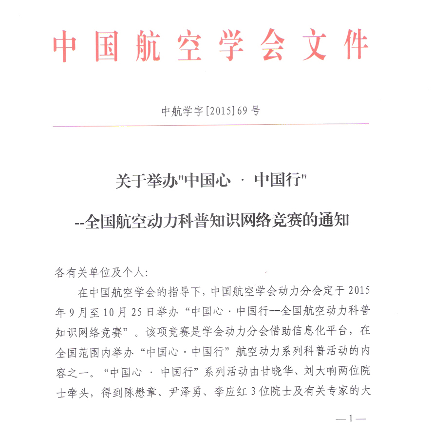 关于举办"中国心-中国行" ——全国航空动力科普知识网络竞赛的通知