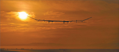 白天,太阳能飞机依靠太阳电池的光电转换效应,为动力系统、航空电子设备及任务载荷提供能量,同时将多余的能量储存在蓄电池中。夜晚,它再通过蓄电池的电能持续飞行。如果太阳能飞机白天存储的能量可以满足夜晚飞行的需要,就能够实现全年不间断地持续飞行,若不考虑其部件的寿命,理论上可以永久飞行。