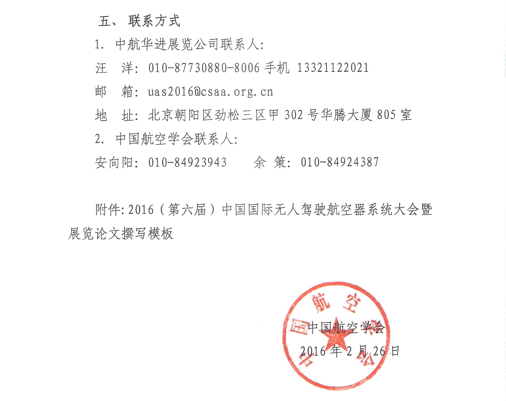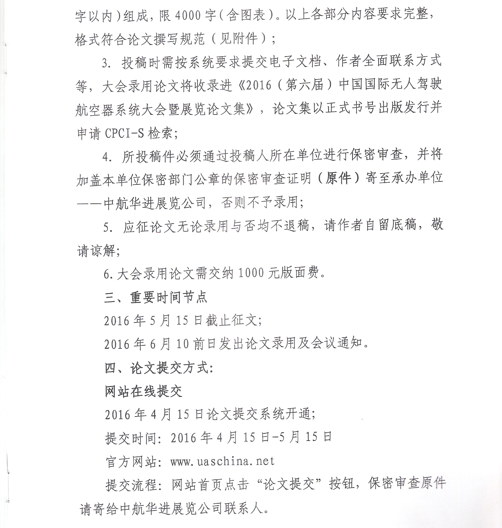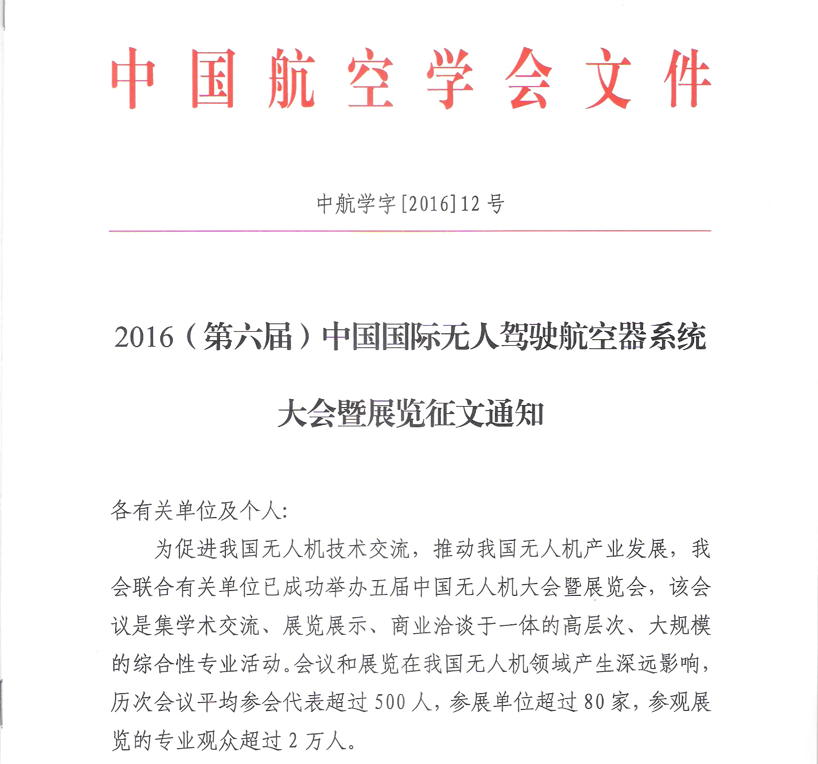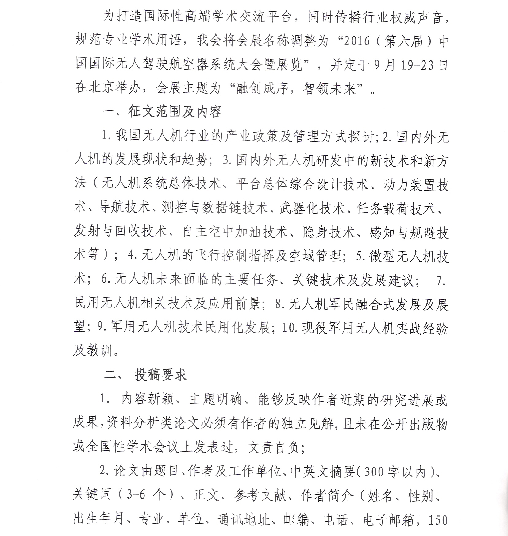 2016(第六届)中国国际无人驾驶航空器系统大会暨展览征文通知