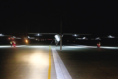 凤凰科技讯 3月31日消息,世界最大太阳能飞机“阳光动力”2号于31日1点35分落地重庆江北国际机场。