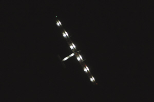 今晨1时许,“阳光动力2号”在江北机场上空盘旋。(重庆晚报)